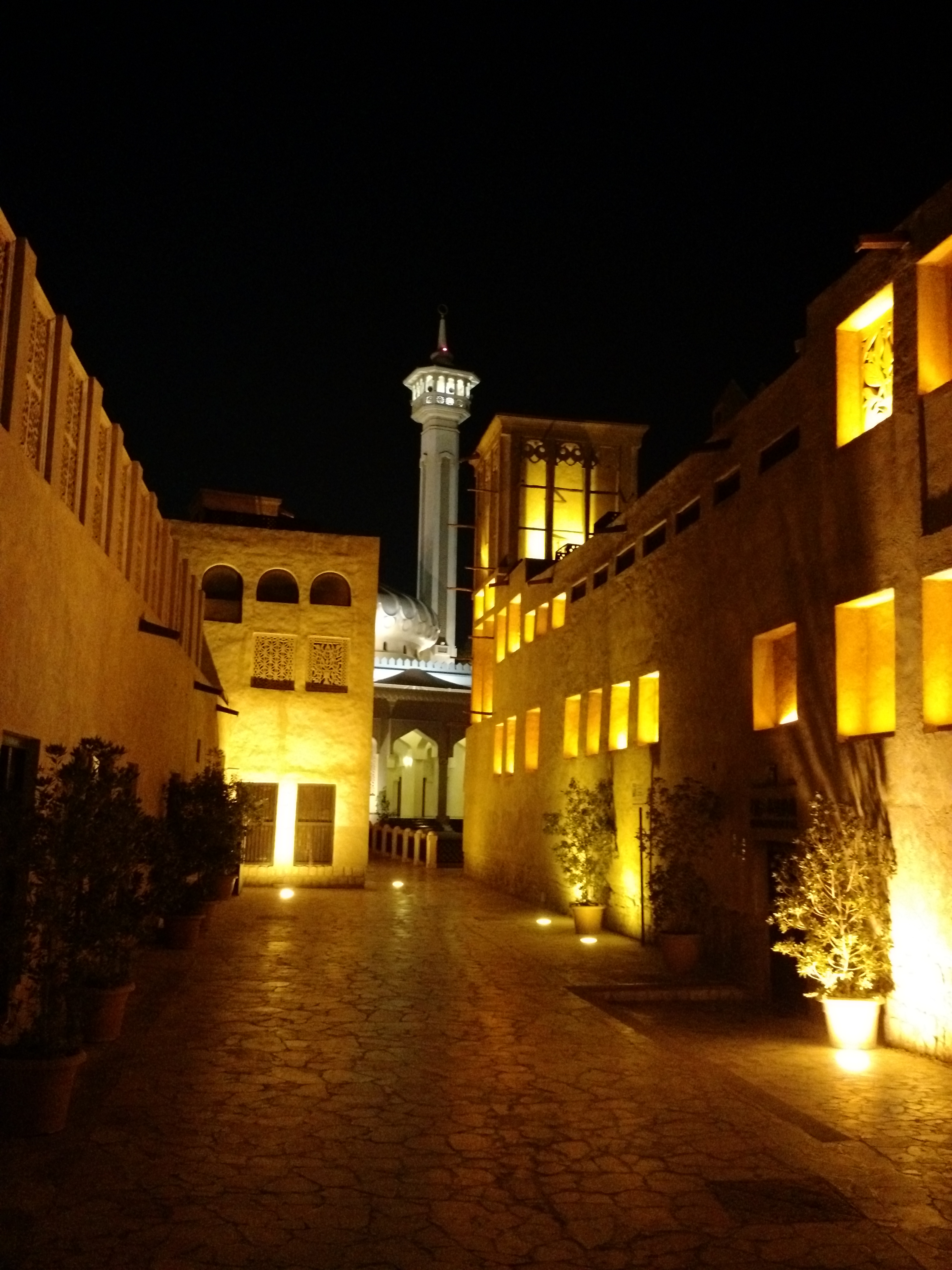The minaret chants woke us up, calling many to prayer and having us recall we were far from home We started our day a skip away from our hotel, with breakfast at an art hotel in the historic old Dubai. In a peaceful courtyard with refreshing mint lemonade, we contemplated ditching our mall plans for our Kindles and countless lemonades. But as our time to explore was limited, we pressed on.