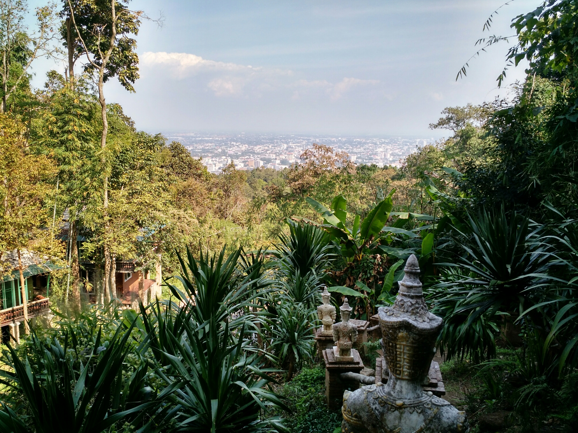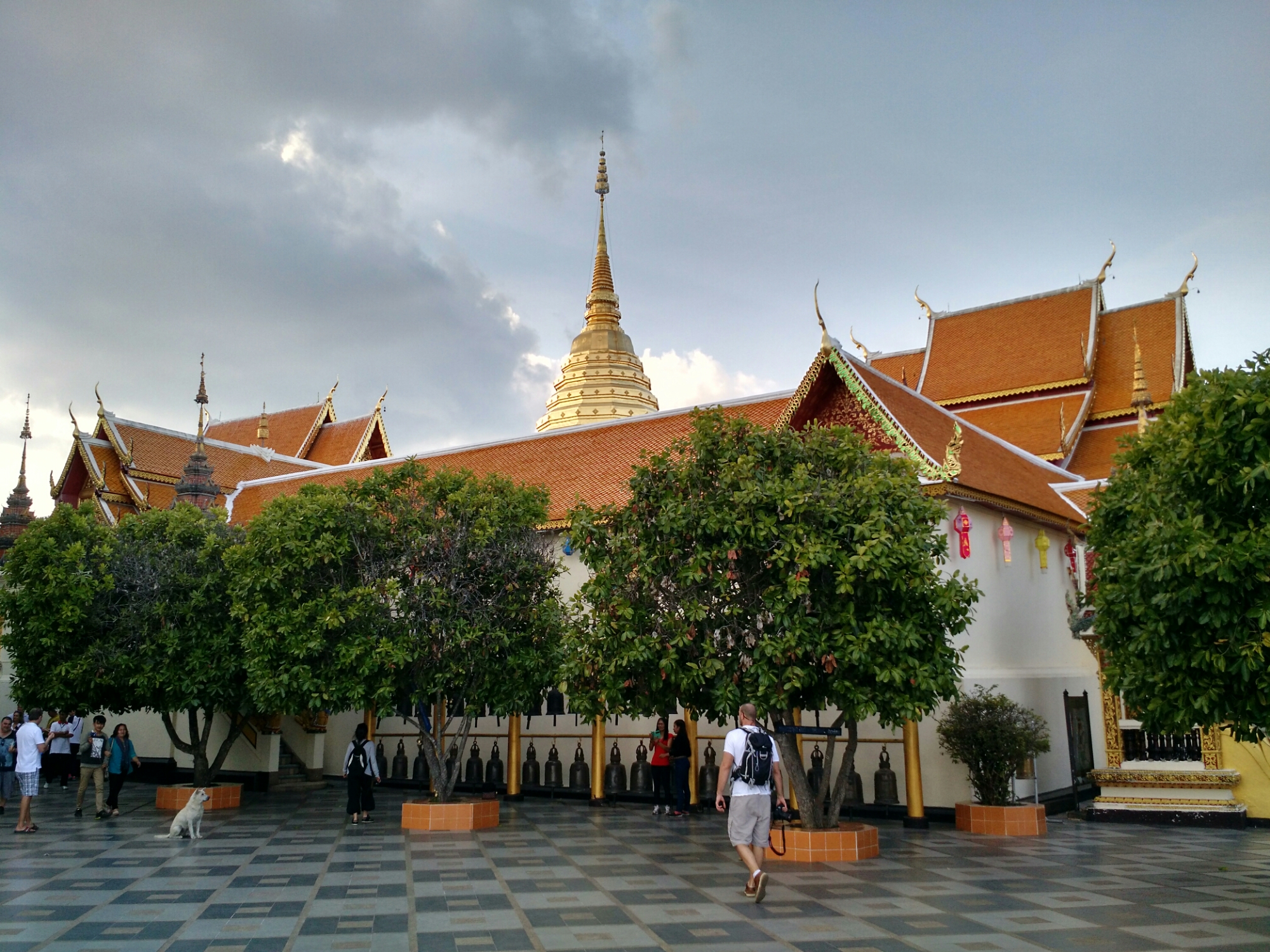 By the time we made it to the top, I insisted we take the elevator to the Doi Suthep temple as I doubted I had energy for the 304 steps to the top, though I knew I needed some more spiritual rejuvenation (or at least hydration). At the top we found better-rested tourists by the hundreds which made me appreciate our solo jungle climb. As the photographer made his rounds, I marveled at a mural which seemed to feature in the crowd a white pilgrim in shorts, which is supposedly taboo. Things that make me go hmmm.