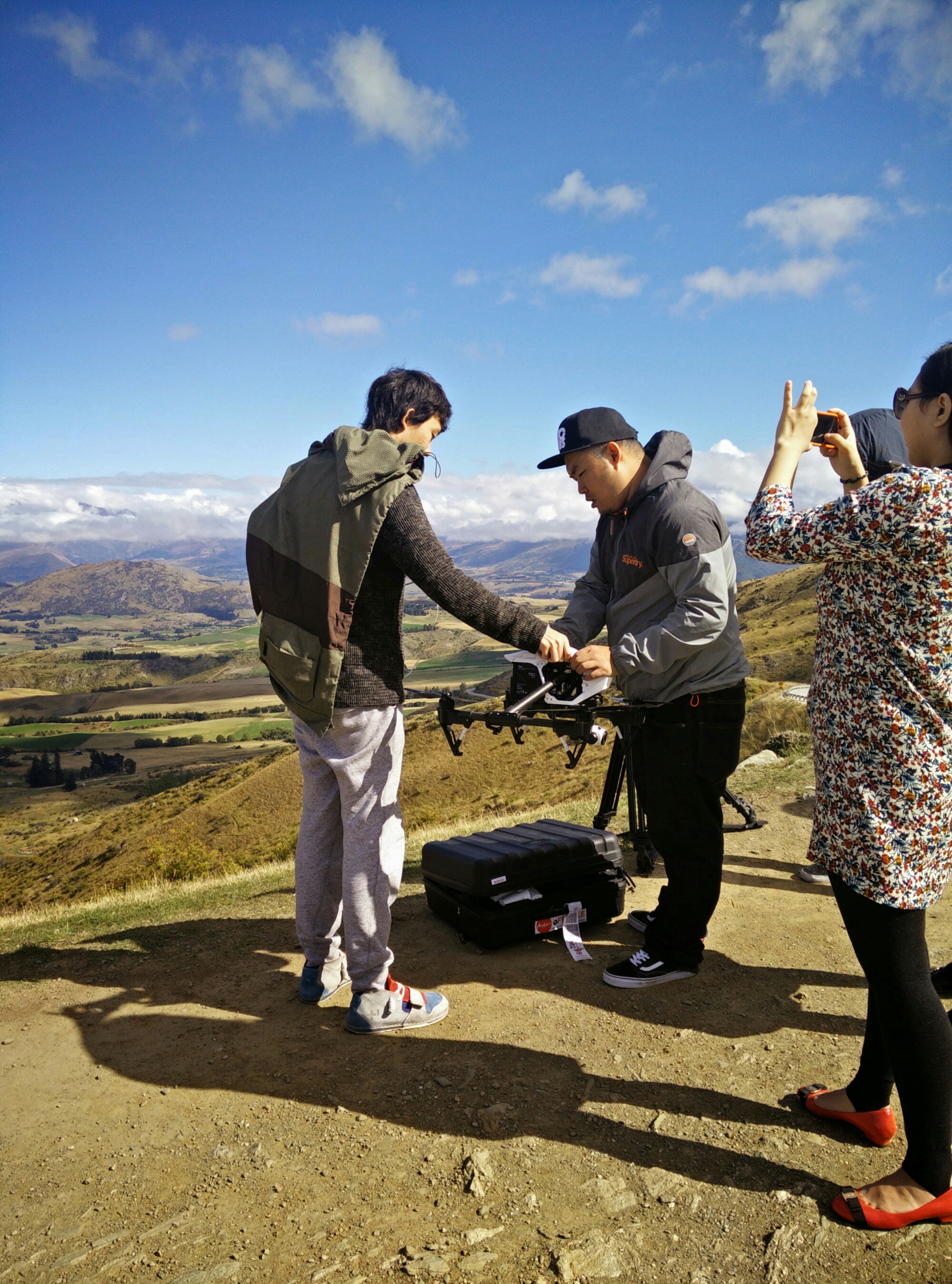 In the road again, T passed the switchback driving test in style. I took the wheel for a heartbeat, then we pulled over to a scrim lookout to watch a drone fly.